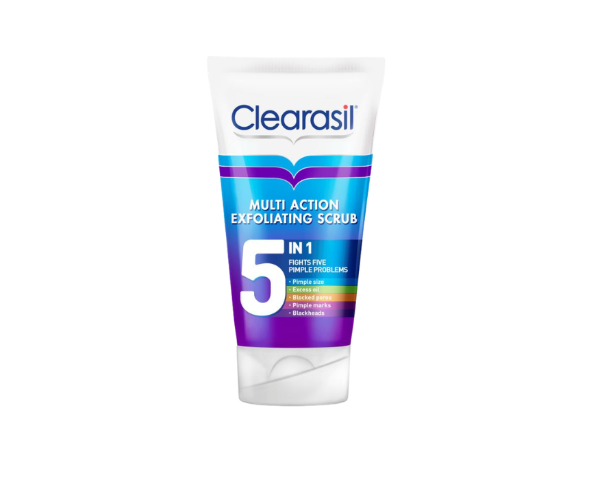 Clearasil Multi Action 5 In 1 Exfoliating Scrub gently cleanses and exfoliates the skin to help remove impurities and unclog pores. It supports the reduction of blemishes while helping prevent new breakouts. Use regularly on damp skin for a clearer, smoother complexion.