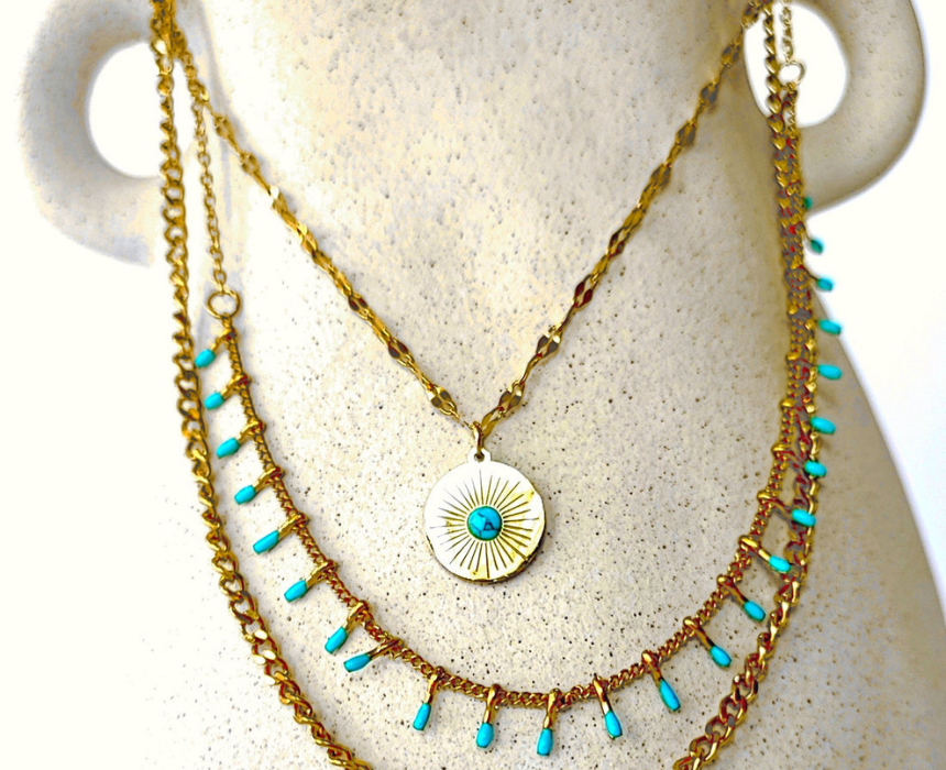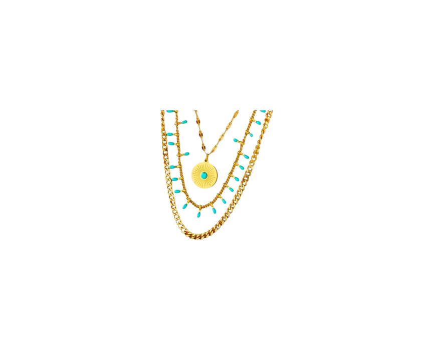 The Cleopatra 3 Layered Necklace is crafted from durable titanium steel and finished with elegant 18K gold plating for a radiant and long lasting shine. Designed with three perfectly balanced layers, it creates a bold yet refined statement inspired by timeless elegance. Ideal for both day and evening wear, it pairs beautifully with simple outfits or deep necklines.