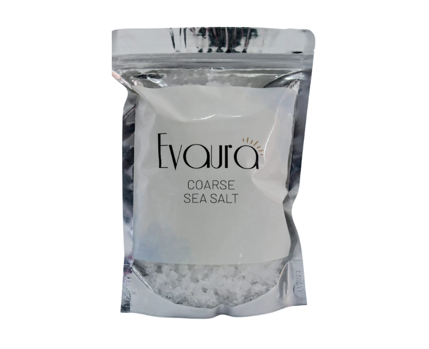 Evaura Coarse Sea Salt (1KG) features large, well-defined crystals harvested using traditional salt-pan methods. Naturally balanced in minerals and clean in taste, it offers excellent control and texture for seasoning by hand. Ideal for roasting, grilling, brining, and crusting, it enhances flavor development while providing a subtle crunch when used as a finishing touch.