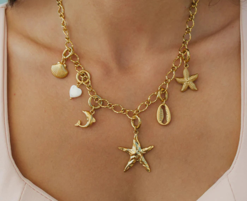 Coastal Star Charm features a refined star inspired design that brings a subtle nautical touch to any jewelry piece. Lightweight and versatile, it can be worn on necklaces or bracelets for effortless everyday styling or layered combinations. Wear it alone for a minimal accent or pair with other charms to create a personalized, ocean inspired look.