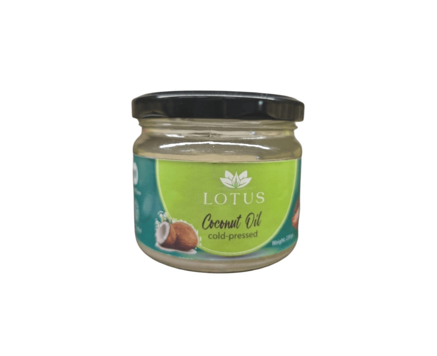100% raw coconut oil made from natural coconut shreds, rich in healthy medium-chain triglycerides (MCTs).