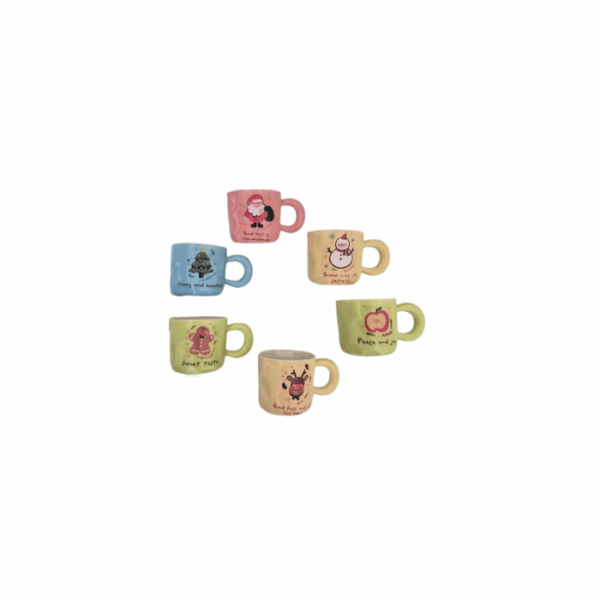 This set of six porcelain coffee cups features vibrant colors including red, orange, yellow, black, blue, and green, each with a 70ml capacity. Made in Turkey, these cups add a lively touch to any coffee moment, perfect for serving espresso or small coffee servings. Their compact size and colorful design make them ideal for casual gatherings or stylish home use, enhancing both presentation and enjoyment.