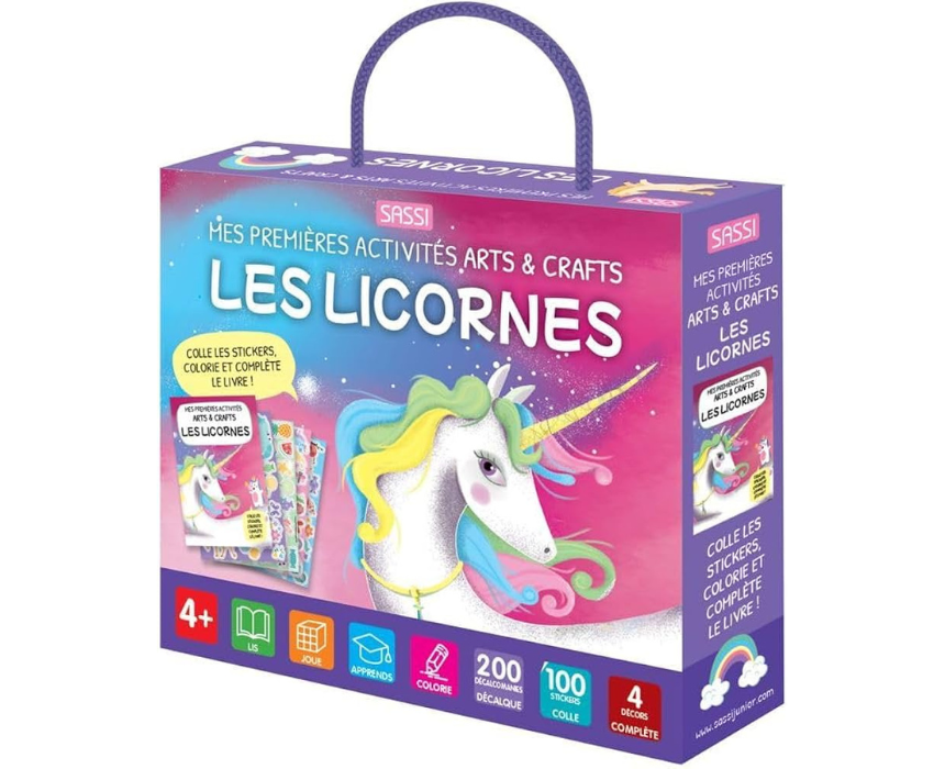 Coffret Les Licornes Mes Premiers Activités Arts et Crafts is a colorful creative activity set designed for young children, featuring unicorn themed arts and crafts projects that encourage imagination and fine motor skills. Presented in a practical boxed format, it is perfect for playtime, gifting, or creative sessions and can be neatly styled on a kids craft table or activity shelf.