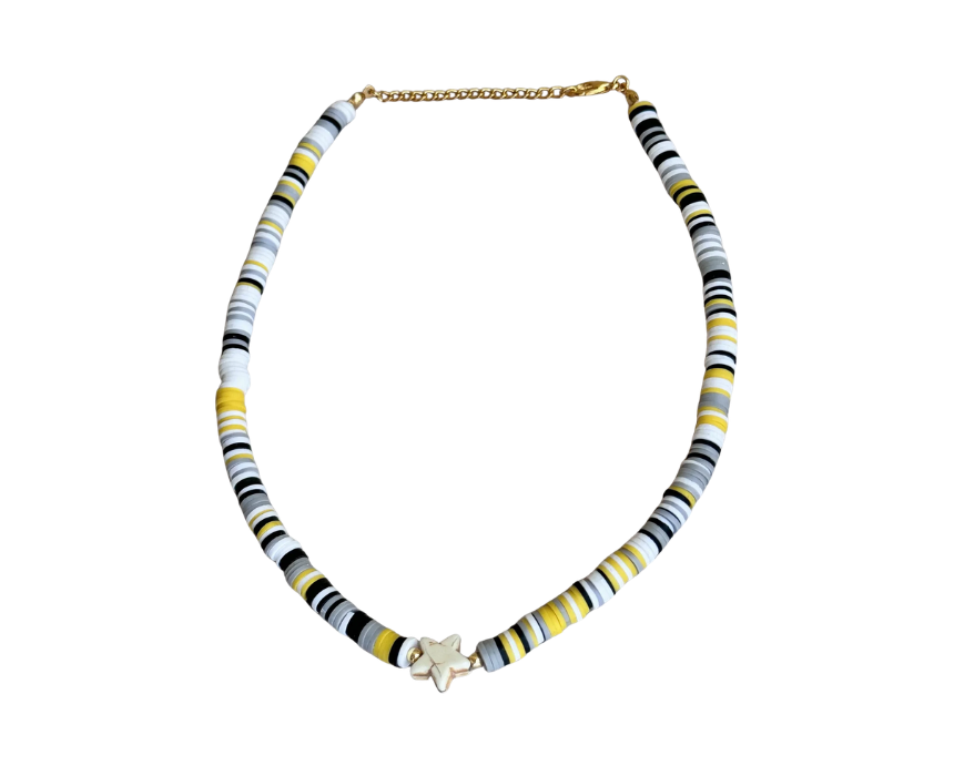 This colored star beads choker features vibrant star-shaped beads that add a playful and eye-catching touch to any outfit. Lightweight and versatile, it can be worn alone for a bold statement or layered with other necklaces for a trendy, personalized look. Perfect for casual wear or adding a fun pop of color to evening ensembles