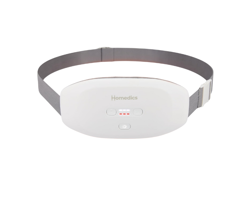The Cycle Comfort Heat & Massage Belt for Women provides targeted relief during menstruation with three vibration levels and three heat settings. Its plush inner layer and adjustable waist belt ensure comfort, while the thin, discreet design allows it to be worn under clothing at home or on the go. Rechargeable and portable, it includes integrated LED controls, a carrying bag, and USB-C cable for convenient use anywhere.