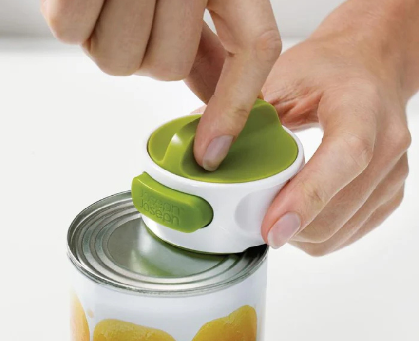 This compact can opener features a space-saving circular design and eliminates the need for cumbersome handles or magnets. Simply place it on top of a can and twist to cut, with an automatic grip on the can edge and an easy-press lid release button for safe and quick use. Pocket-sized and convenient, it is ideal for everyday kitchen tasks and easy to clean with a damp cloth.
