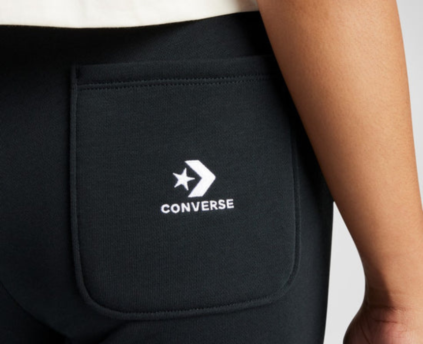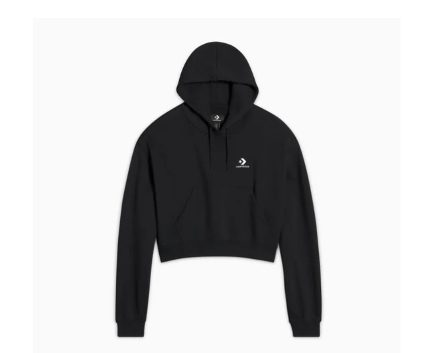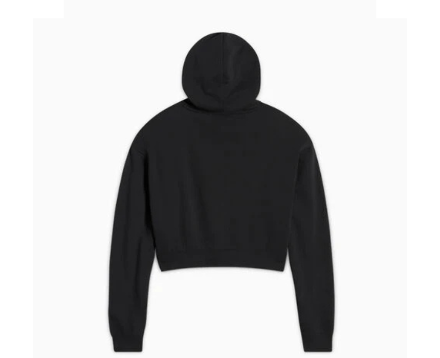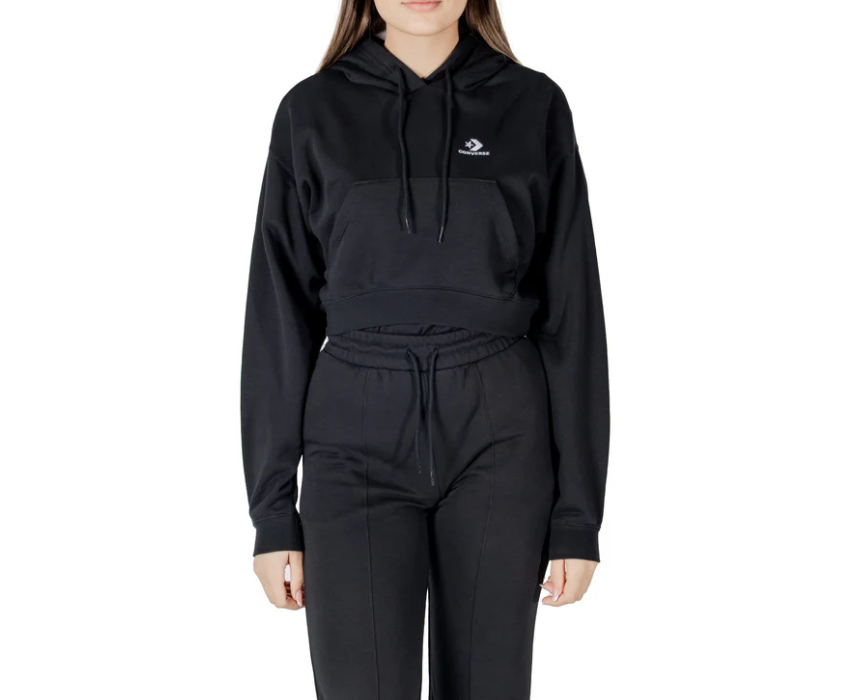 The Converse Felpa Set for women in black combines relaxed comfort with modern style, featuring a long sleeve hoodie with round neck, hood, and single pocket, paired with wide leg pants. Crafted from 80 percent cotton and 20 percent polyester, it offers a soft and free moving feel for everyday wear. Available in sizes S, M, and L, it pairs perfectly with sneakers for effortless casual looks.
