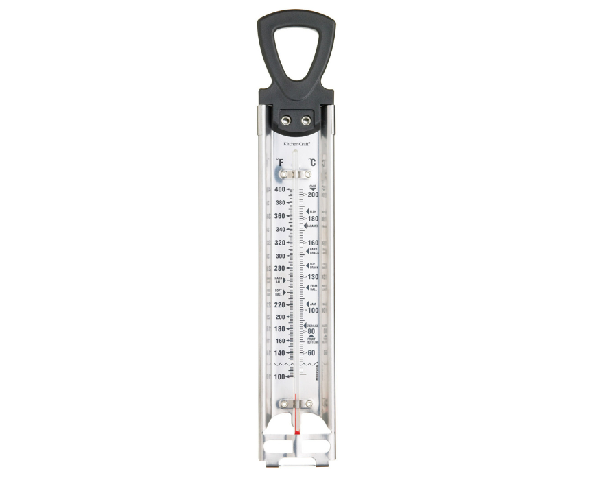The KitchenCraft Home Made Multi-Purpose Cooking Thermometer is a must-have for precise temperature control in your kitchen. Perfect for making jams, sugar work, deep frying, or any recipe that relies on exact temperatures, this thermometer shows both Celsius and Fahrenheit scales along with key temperature points for sugar and jams. Made from heat-proof stainless steel and glass, it is robust, mercury-free, and built to last. Handwash only, with a 12-month guarantee for peace of mind.