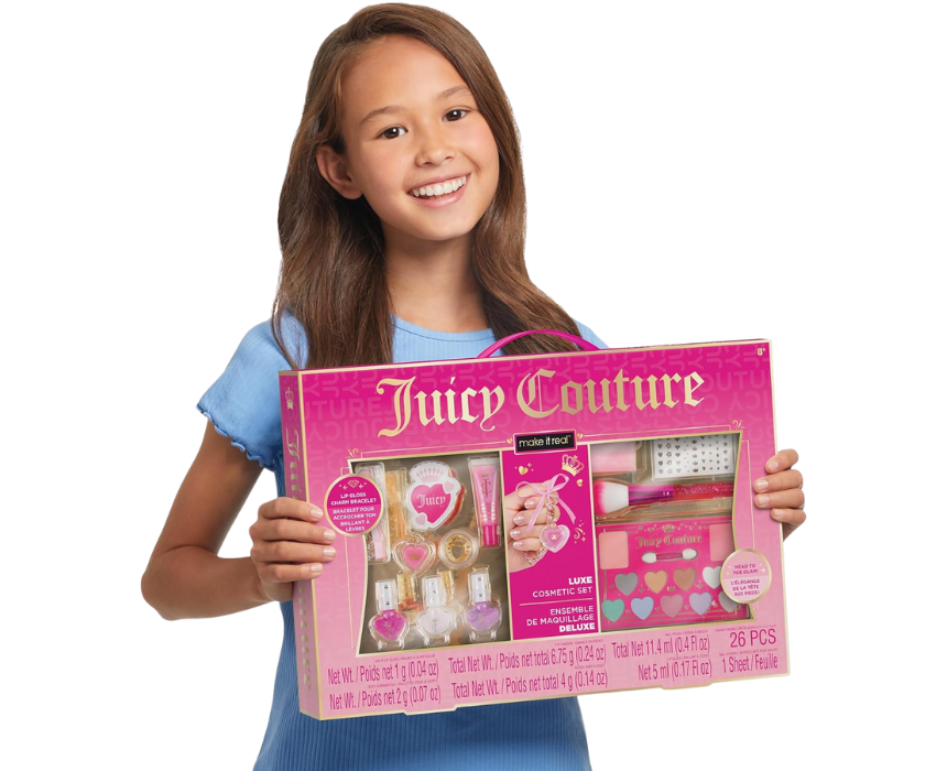 The Cra-Z-Art Complete Cosmetic Set offers a fun and creative makeup experience for tweens, including lip gloss, eyeshadow, nail polish, blush, body shimmer, and nail stickers. It also features a DIY beaded lip gloss charm bracelet and a mani-pedi set with a nail file and three nail polishes for coordinating looks. Perfect for exploring personal style, this all-in-one kit makes an ideal gift for young beauty enthusiasts.
