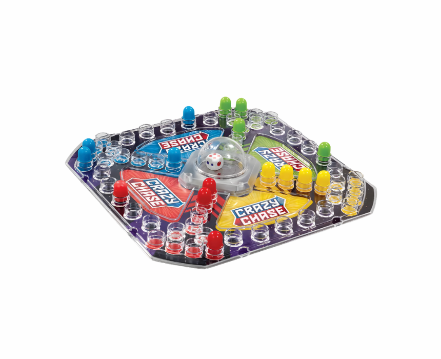 This Addo Crazy Chase Board Game is suitable for children aged 3 years and above and for 2 to 4 players. Players take turns pressing the dice dome to move their pegs across the board while trying to reach the finish line first, but watch out for opponents sending your pegs back to start. The game includes 16 pegs in four colours, a game board with dice dome, and an instruction sheet, providing fast paced fun, friendly competition, and family entertainment.