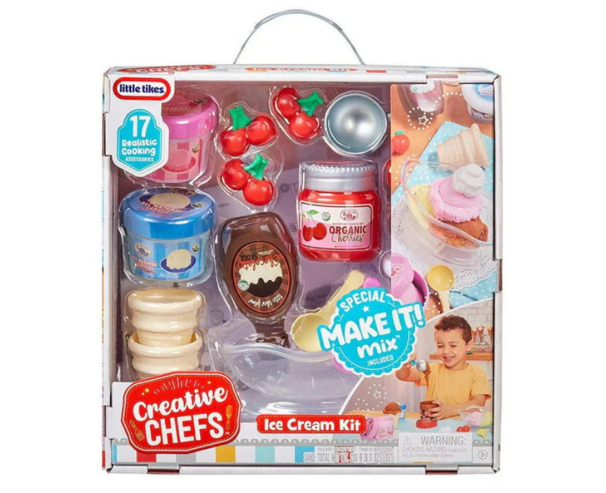 Creative Chefs Ice Cream Kit With Special Make It is a fun and interactive activity set that lets kids create their own colorful ice cream treats using safe, hands on materials. The kit encourages creativity, imaginative play, and sensory exploration as children mix, shape, and decorate their creations. Finished ice cream designs can be displayed, shared with friends, or used during pretend play for a sweet and playful experience.