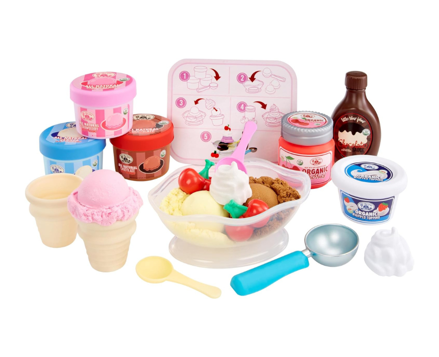 The creative chefs ice cream kit lets kids scoop, mold, and create fun ice cream treats using reusable play sand and detailed accessories. It includes multiple tools and a recipe guide to encourage imaginative role play and hands on creativity. Perfect for kids, it supports fine motor skills while delivering engaging and mess free playtime.
