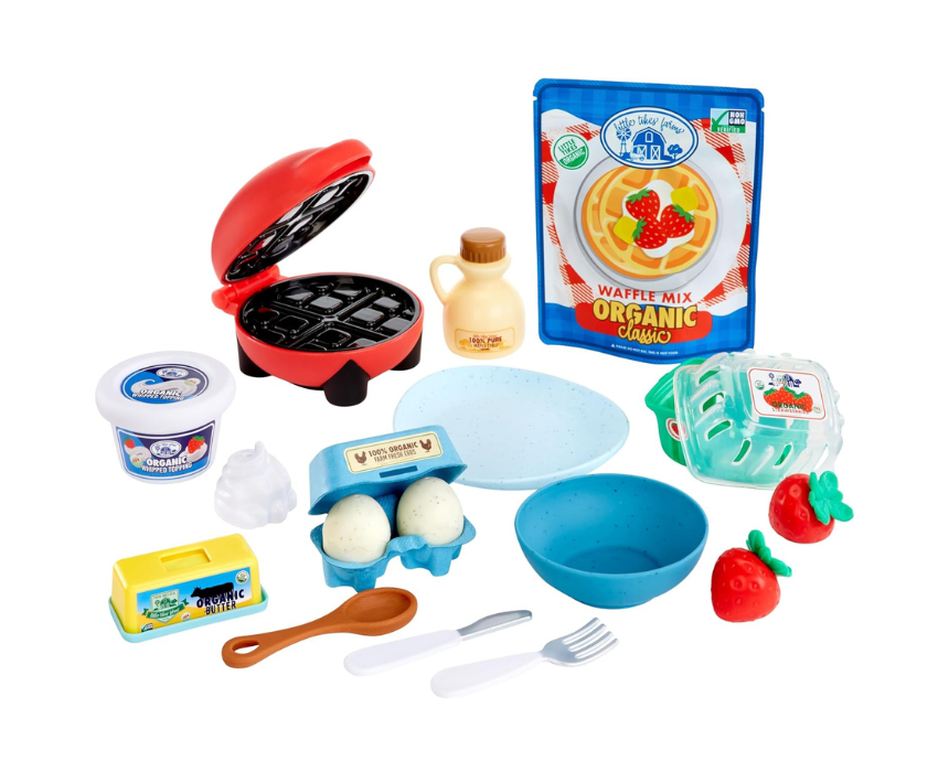 The creative chefs waffles kit lets kids mix, shape, and serve waffles using reusable play sand and detailed accessories for a realistic cooking experience. It includes utensils and a recipe guide that encourage imaginative play and creativity. Perfect for kids, it helps develop fine motor skills while providing fun and engaging playtime.