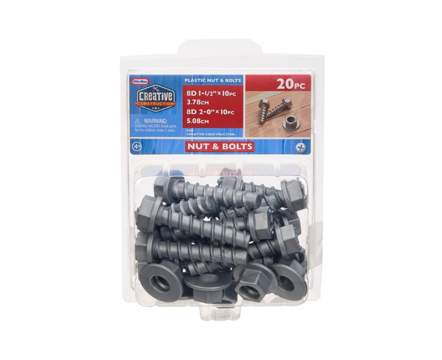 The creative construction nuts and bolts set includes multiple pieces designed for twisting, connecting, and building during hands on play. It encourages imaginative creation while helping develop fine motor skills and problem solving abilities. Perfect for kids, it offers a fun and engaging introduction to basic construction concepts.