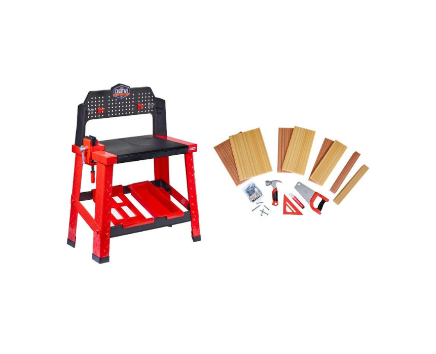 The creative construction workbench provides a realistic setup with tools and foam materials for hands on building play. It allows kids to saw, hammer, and create while learning basic construction skills in a safe environment. Perfect for kids, it encourages imagination, confidence, and motor skill development through interactive play.