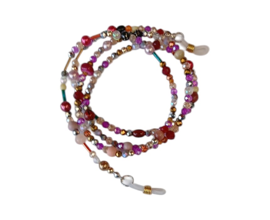 Never lose your eyewear again with this long handmade eye-glass necklace. Crafted with a delicate mix of colored pearls, crystals, and small beads, this functional accessory keeps your glasses close while adding a touch of elegance to your look. The lightweight design ensures it won’t pull on your frames, while the high-quality items guarantee durability. A perfect gift for teachers, students, or anyone who wears glasses and appreciates handmade art.