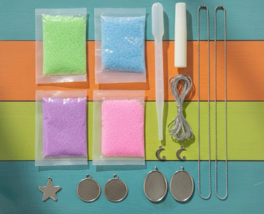 This ADDO Crystal Making Necklace Craft Set is suitable for children aged 5 years and above. The set includes everything needed to create five beautiful pendant necklaces using coloured crystal granules, metal charm holders, chains, moon charms, and a glue tube. Children can enjoy hands on creativity while making stylish jewellery that they can wear and show off, encouraging imagination, fine motor skills, and crafting fun.