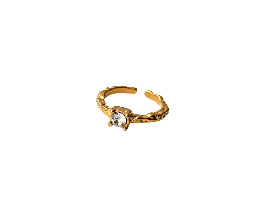 The Crystal Ring features an elegant 18K gold plated stainless steel design with an adjustable band for a perfect fit. Its dazzling crystal centerpiece adds a touch of luxury and sophistication, making it a perfect statement piece. Wear it alone for a minimalist look or stack it with other rings for a trendy, layered style. Ideal for both everyday wear and special occasions, this versatile ring adds sparkle and elegance to any outfit.