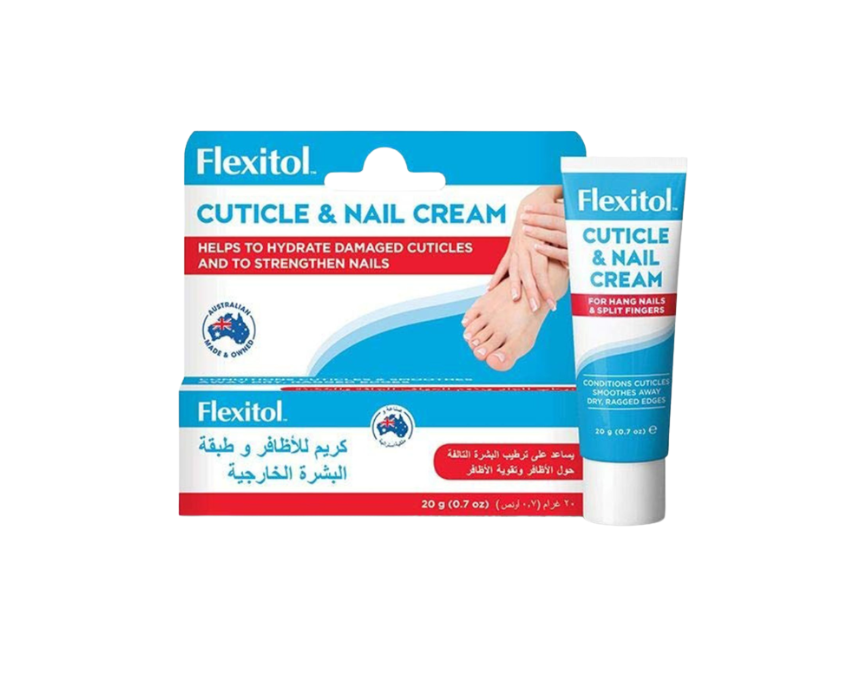 Flexitol Cuticle & Nail Cream is a nourishing treatment that deeply moisturizes and softens dry, ragged cuticles while strengthening brittle nails. Its rich emollient formula helps reduce hangnails, restore natural moisture, and promote healthier nail growth. Massage daily into cuticles and nails for smooth, protected, and revitalized hands and feet.