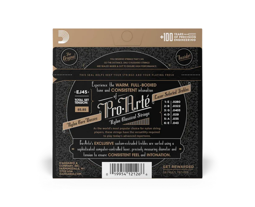 Pro-Arte Nylon delivers the classic D’Addario sound with multifilament nylon basses wound in silver-plated copper for warm, consistent tone, paired with clear nylon trebles that offer sweet, mellow highs. This normal tension set provides a perfect balance of rich sound, comfortable feel, and dynamic projection, ideal for players seeking the iconic classical guitar experience. Perfect for everyday practice or performance.