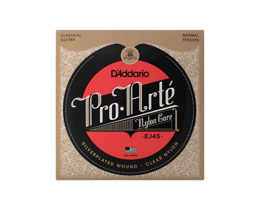 D’Addario EJ45 Pro-Arte Normal Tension Classical Guitar Strings (Full Set) are a popular choice for classical guitarists, offering a neutral tone that lets your instrument respond naturally. This 6-string set features silver-plated basses and clear nylon trebles at medium tension, providing balanced playability and long-lasting performance.