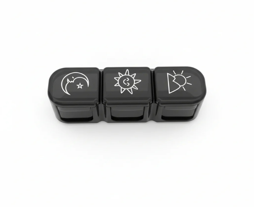 The Daily Pill Planner helps keep medications, vitamins, and supplements organized with clearly labeled compartments for each day. Its compact, lightweight, and durable design makes it travel-friendly, while secure lids ensure pills stay safe and protected. Simply fill each compartment to manage your daily health routine effortlessly at home or on the go.