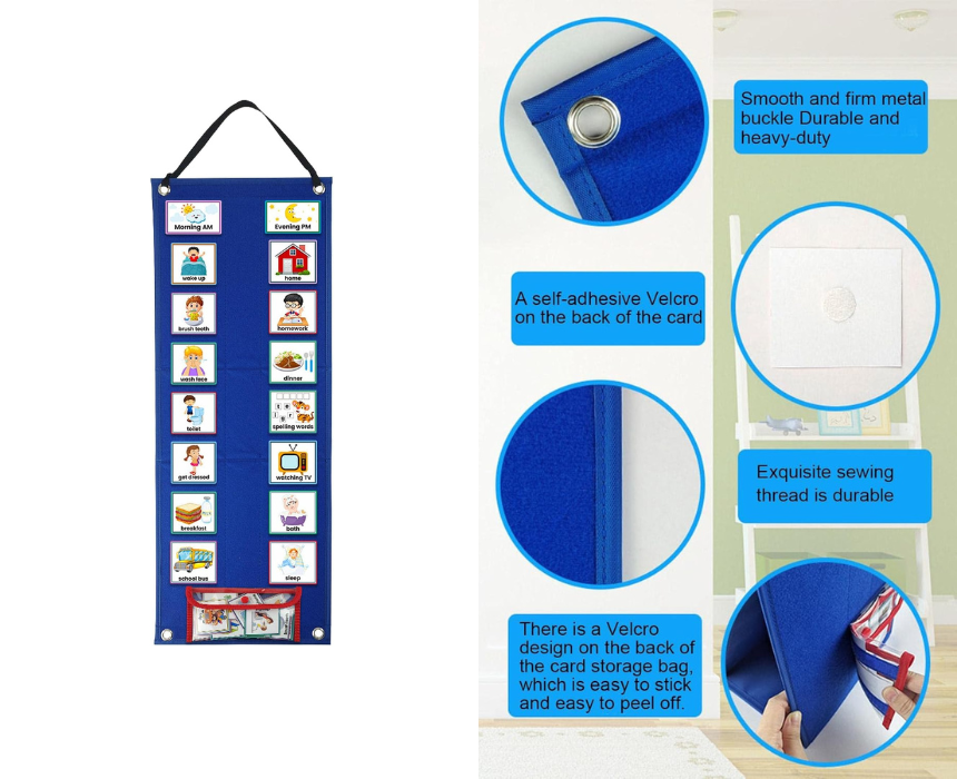 The Daily Work Visual Schedule for Kids includes 70 routine cards designed to help children organize their day with ease. Measuring 67.5cm x 24.4cm, this chore and routine chart supports logical thinking, cooperation, shape recognition, and hand-eye coordination while encouraging sensory development. Perfect for classrooms, teachers, and at-home use, it makes daily tasks fun and engaging for young learners. Designed for kids aged 3+