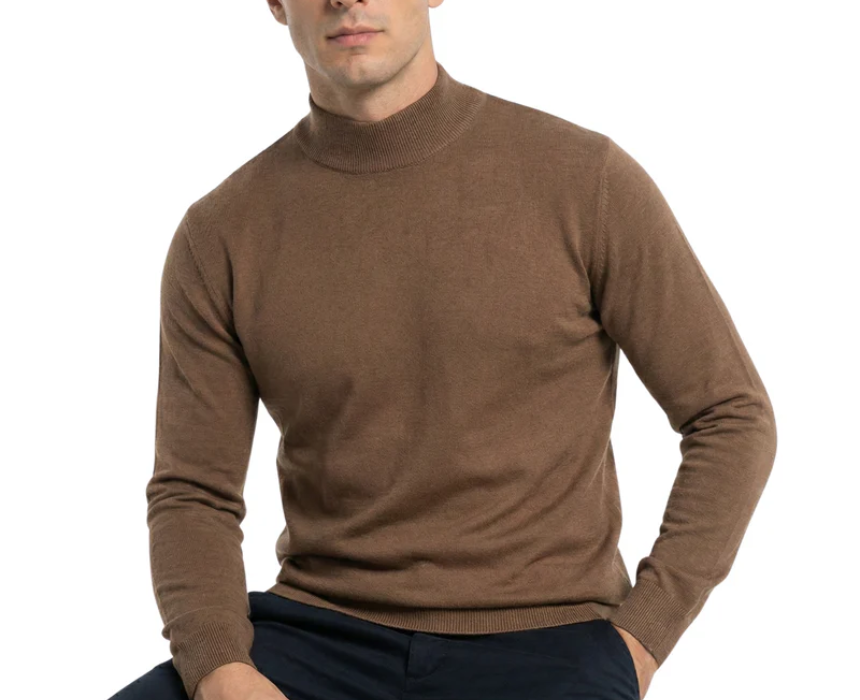 The Damat Brown High Neck Knitted Pullover features a warm brown color, soft knitted fabric, and a contemporary high neck design that offers both comfort and a refined appearance. Ideal for cooler seasons, it provides warmth while maintaining a clean, modern silhouette. It can be styled with chinos or jeans and layered under a jacket or coat for an effortlessly polished look.