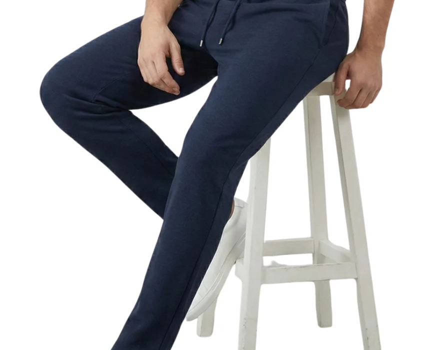 The Damat Navy Casual Pant With Elastic Waist features a comfortable, relaxed fit in a versatile navy shade, designed with an elastic waistband for ease and flexibility. Its lightweight and breathable fabric makes it perfect for everyday wear, casual outings, or travel. It can be paired with a polo shirt and sneakers for a relaxed look or dressed up with a button-down shirt for smart-casual occasions.