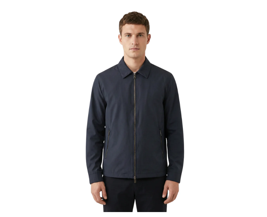 The Damat Navy Long Sleeve Zippered Jacket With Collar features a sleek, modern design in deep navy, crafted with a full front zipper and structured collar for added style and functionality. Its long sleeves and tailored fit make it ideal for casual outings or layering over smart-casual outfits. It can be paired with jeans and sneakers for a relaxed look or styled with chinos for a polished, versatile ensemble.