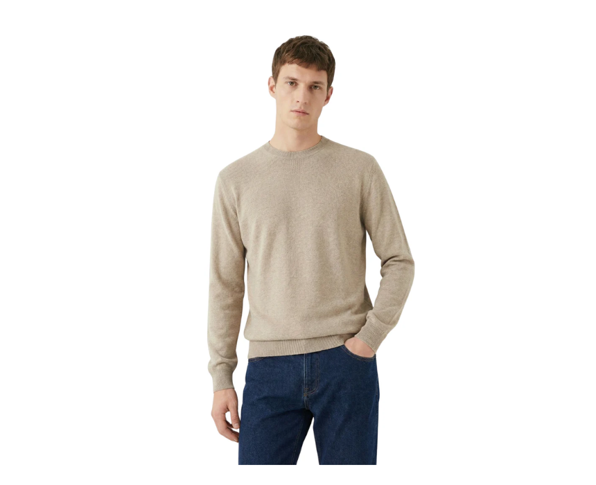 The Damat Round Neck Knitwear Beige Long Sleeve Pullover features a soft, comfortable knit in a versatile beige shade, designed with a classic round neckline and long sleeves for a timeless, stylish look. Its lightweight yet cozy fabric makes it ideal for casual wear or layering over shirts for a smart-casual outfit. It can be paired with jeans or chinos for a polished, everyday ensemble.