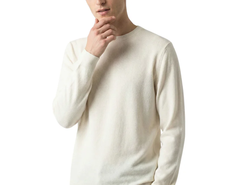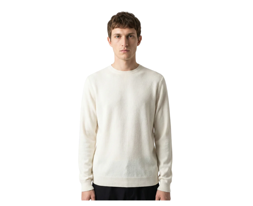 The Damat Round Neck Knitwear Offwhite Long Sleeve Pullover features a soft, comfortable knit in a versatile offwhite shade, designed with a classic round neckline and long sleeves for a timeless look. Its lightweight yet cozy fabric makes it ideal for casual wear or layering over shirts for a smart-casual outfit. It can be paired with jeans or chinos for a polished, everyday ensemble.