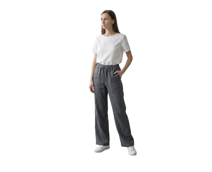 This dark grey loose fit pant features a comfortable elastic waist and a relaxed silhouette for all-day wear. The versatile dark grey color makes it easy to style with casual tops, sweaters, or sneakers for a chic and comfortable everyday look.