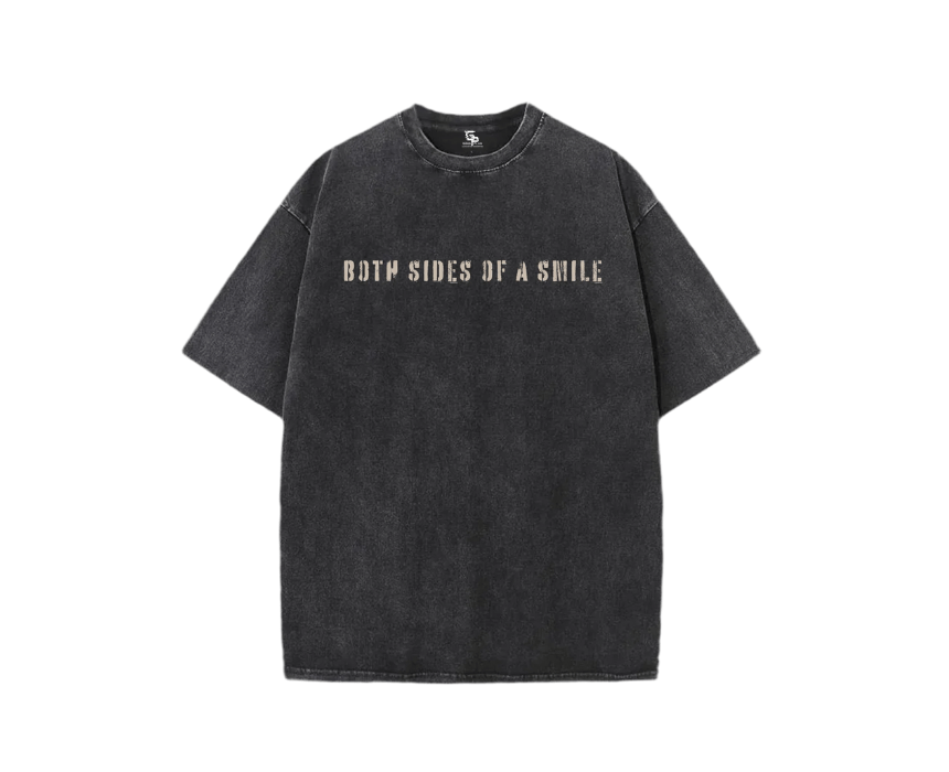 This Both Sides Of A Smile Men Tee is made from 220 GSM 100 percent washed cotton with DTG printing, offering a relaxed fit and bold design for everyday streetwear.