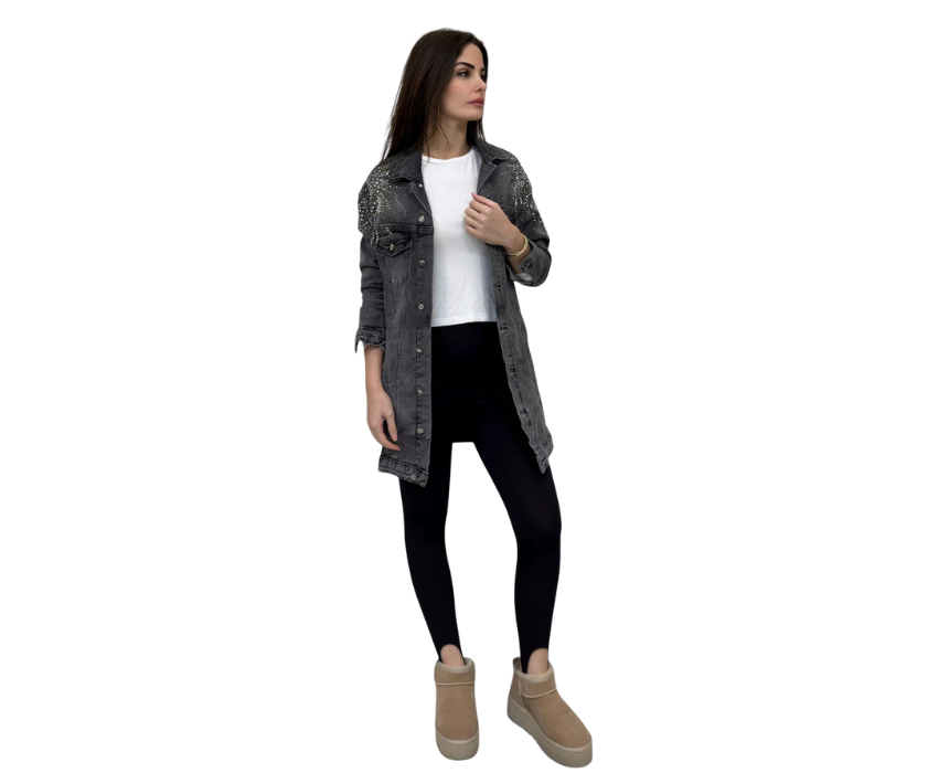 This Denim Jacket is crafted from durable, high quality fabric and designed with a classic, flattering silhouette for versatile wear. Featuring practical pockets and secure closures, it pairs effortlessly with casual outfits or layered over dresses and tailored pieces for a polished look. Perfect for everyday wear, it adds a timeless, stylish touch to any wardrobe.