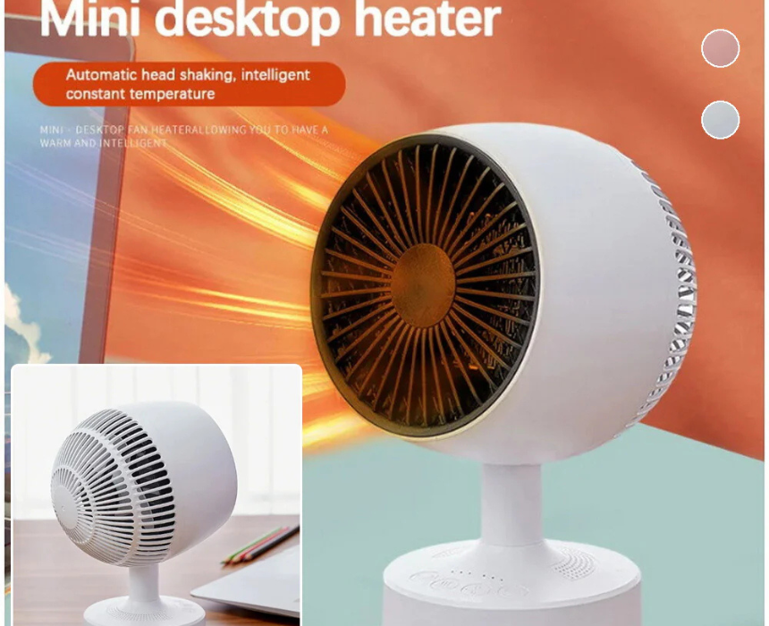 The Desktop Mini Portable Fan and Heater provides instant personal comfort with dual functionality for cooling or warming small spaces. Its compact, USB-powered design is perfect for desks, bedside tables, or office use, combining convenience with modern style for year-round use.