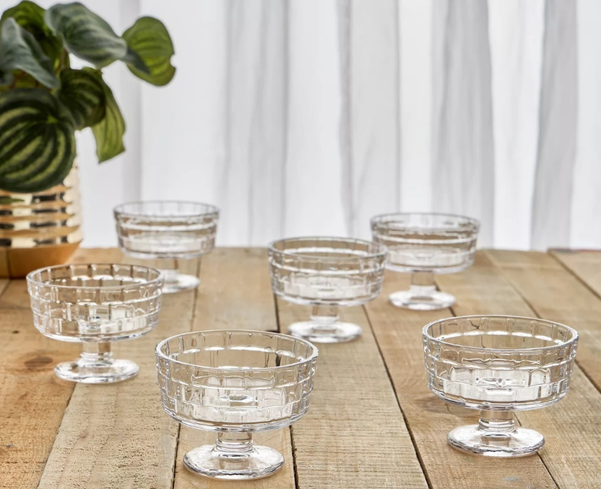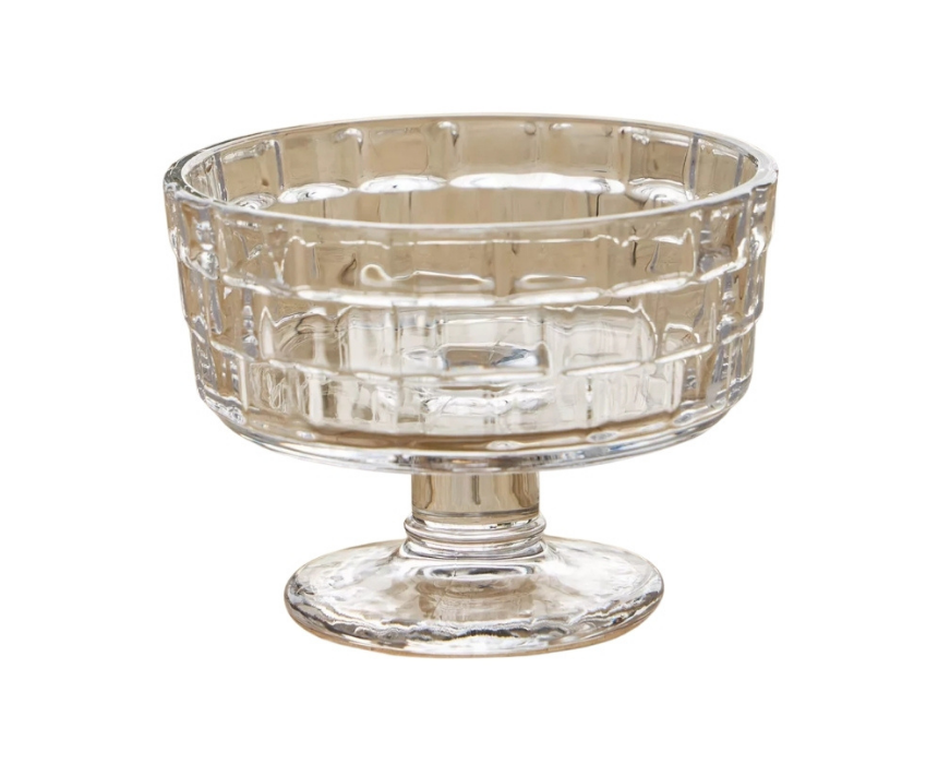This set of dessert bowls features a capacity of 215 ml each and measures 7.4 cm in height and 9.7 cm in width and length, crafted from high quality glass for durability and elegance. Designed with a modern luxe style, they are perfect for serving desserts, ice creams, or mousses. Ideal for any occasion, they enhance presentation with a refined and sophisticated touch.