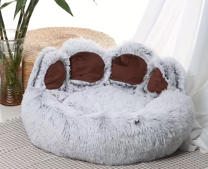 This 55cm plush paw print pet bed provides a soft and cozy resting space for small to medium sized dogs and cats. Made with comfortable plush fabric and a cushioned interior, it supports warmth and relaxation in all seasons. Ideal for indoor use, it combines comfort, support, and a cute design for everyday pet care.