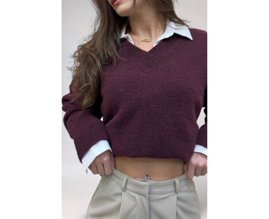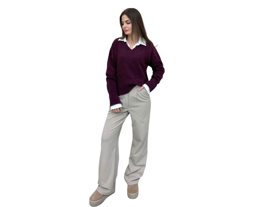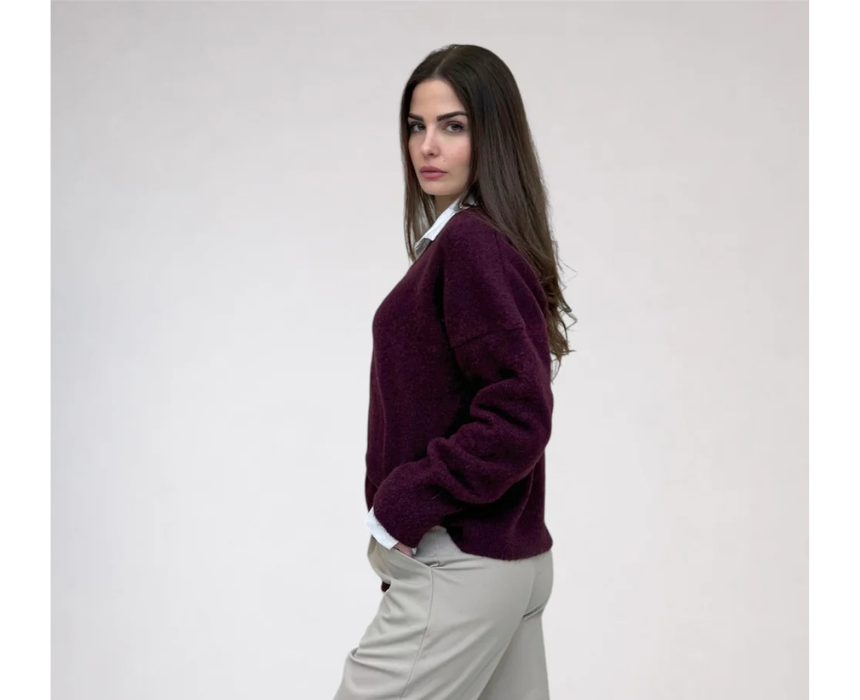 The Diana Sweater in burgundy offers a cozy and versatile style ideal for cooler days. Designed with a comfortable knit feel, it pairs easily with jeans, tailored pants, or skirts for a balanced everyday outfit. A practical layering piece that works well with coats or jackets for effortless seasonal styling.
