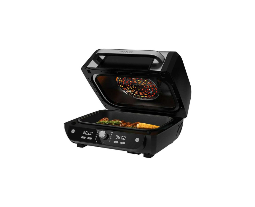 This 1700W dual heat air fryer features a large 8 litre capacity, four adjustable grill levels, and twelve preset programs for fast, efficient, and versatile cooking. With an adjustable thermostat from 50 to 230 degrees and a timer from one minute up to twenty four hours, it delivers precise results for family sized meals. Ideal for everyday cooking, it is best used by selecting a preset or manual setting and adjusting the grill level for perfectly browned and crispy dishes.