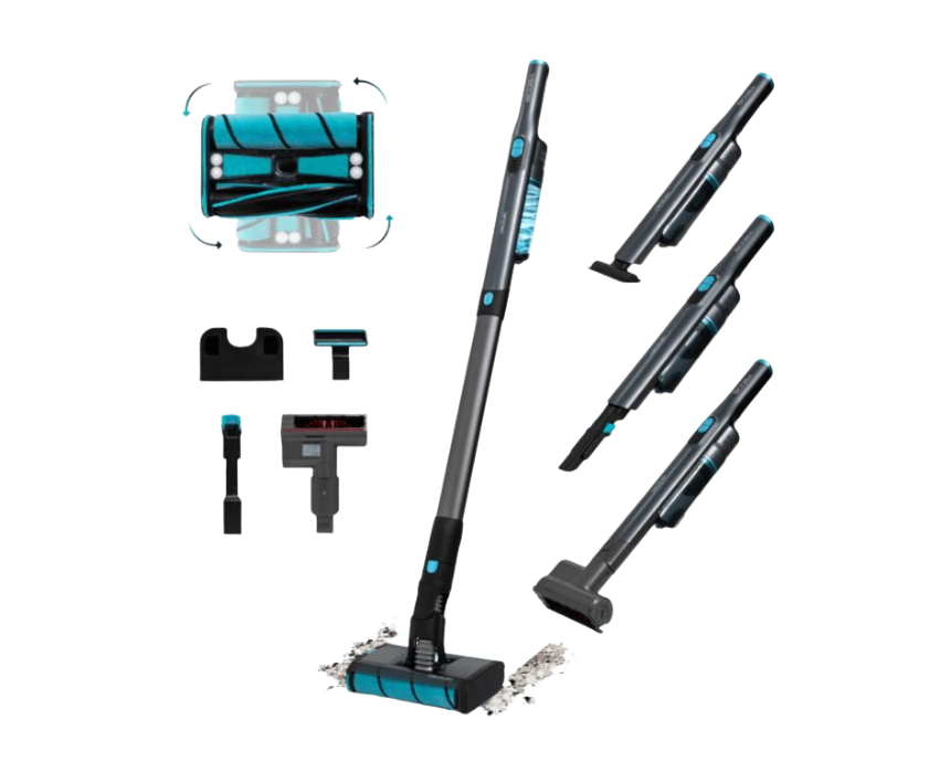 The Scoba 2100 Twice Max Upright Vacuum Cleaner is an ultra-light 2-in-1 stick and broom vacuum with a 210 W digital brushless motor and 20 kPa suction power. Its omnidirectional motorized head with double brushes and Cyclonic System technology cleans all surfaces efficiently, while two power modes and up to 45 minutes of autonomy make it ideal for daily use. Includes upholstery, corner, and mattress accessories with a convenient wall bracket for storage.