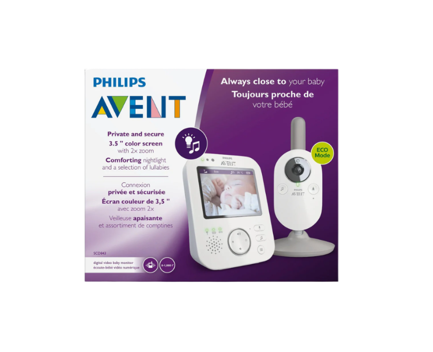 This baby monitor provides a secure and private connection using adaptive FHSS technology, ensuring reliable real-time monitoring with a range of up to 300 meters. It features a high-resolution 2.7-inch screen with clear night vision, allowing parents to see and hear their baby with excellent sound quality even in low light conditions. With eco mode, LED connection alerts, remote talk function, and soothing lullabies, it helps create a calm and connected monitoring experience for overnight care.