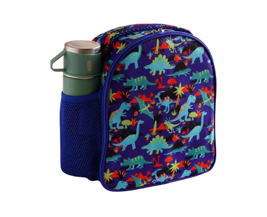 This insulated lunch bag measures 24 x 11 x 28 cm and is designed to keep food fresh and protected for longer periods. Its spacious interior easily fits lunch boxes, snacks, and drinks, while the durable construction ensures long lasting daily use. Featuring a fun dinosaur design, it is perfect for school and adds a playful touch to mealtime.