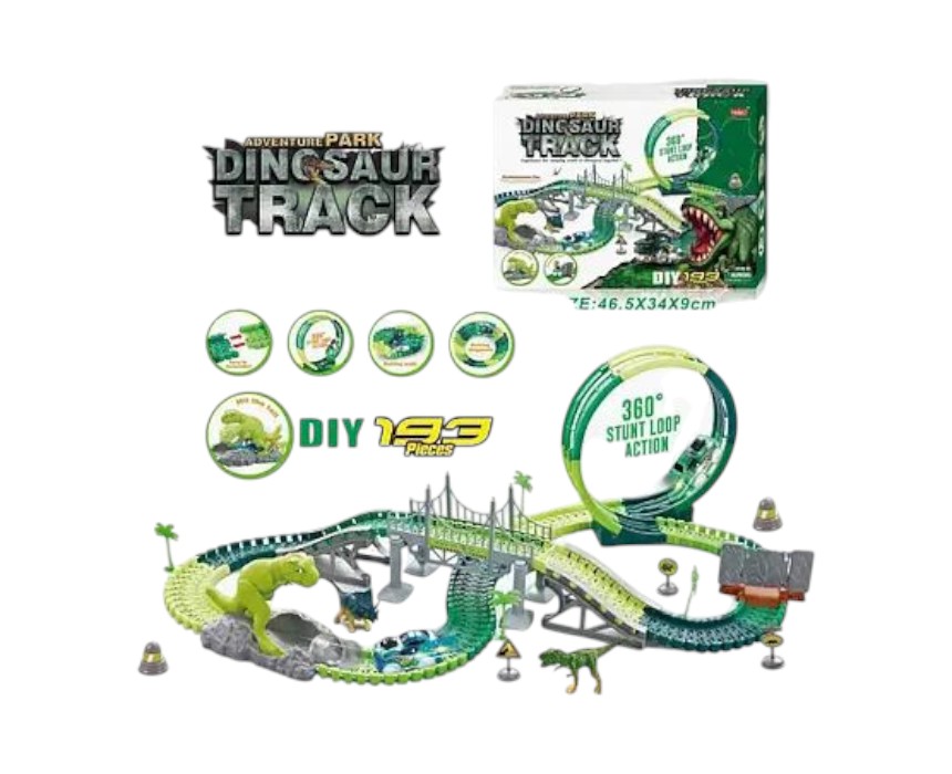 Create a Jurassic adventure with the Dinosaur Race Track Set! Easy to assemble and fully customizable, this set allows kids to build, twist, and redesign prehistoric tracks again and again. The battery-operated car runs smoothly through curves and bridges, bringing imaginative play to life. Made from safe, eco-friendly materials, it encourages creativity and hands-on learning while providing quality parent-child bonding time. Dimensions: 46×34 cm. Ages 3 and up.