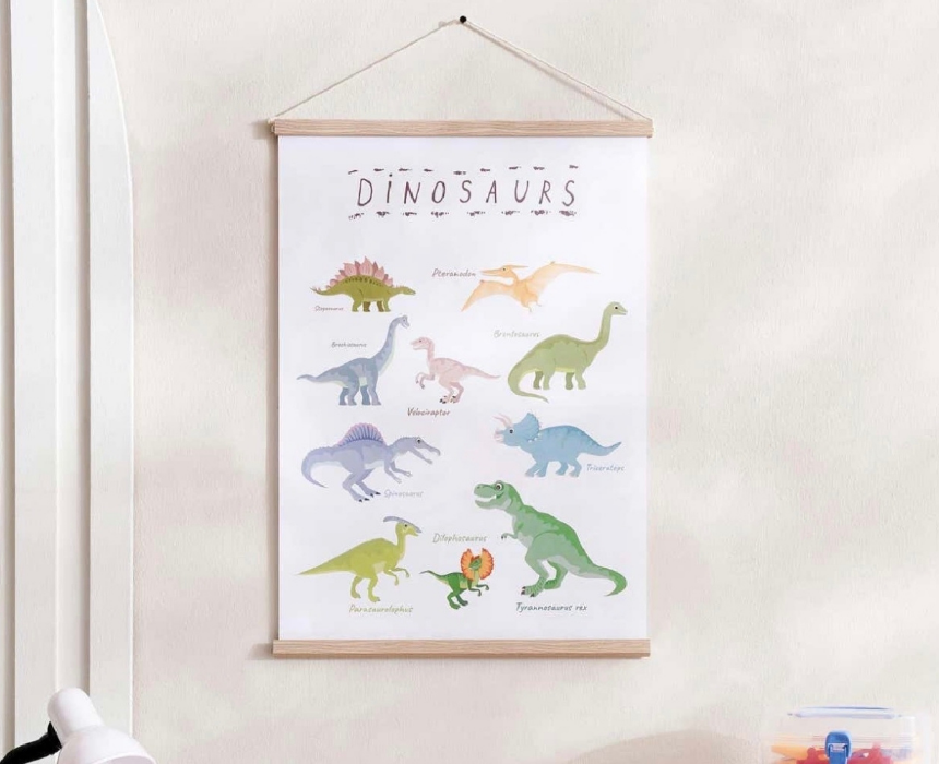 This framed canvas wall art measures 45 x 60 cm and features playful dinosaur illustrations in vibrant colors. Made with high quality canvas for durability, it is perfect for kids’ rooms or classrooms. Ready to hang, it adds character and a fun, lively touch to any wall.