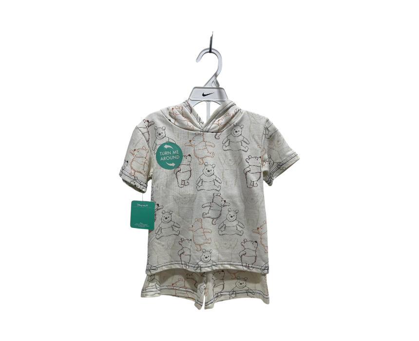 This 24-month Disney set features a coordinated look in a light beige “ecru” base with all-over Winnie the Pooh line-art. The outfit includes a unique short-sleeved hooded t-shirt with a character print that continues onto the back. Matching printed shorts with an elasticized waistband ensure comfort for your toddler. Crafted from soft 100% cotton, it is perfect for summer wear or outdoor play. Simply pull on for an effortless, stylish outfit. Please check the size (24M) prior to ordering to ensure a proper fit as this includes the two-piece set only.