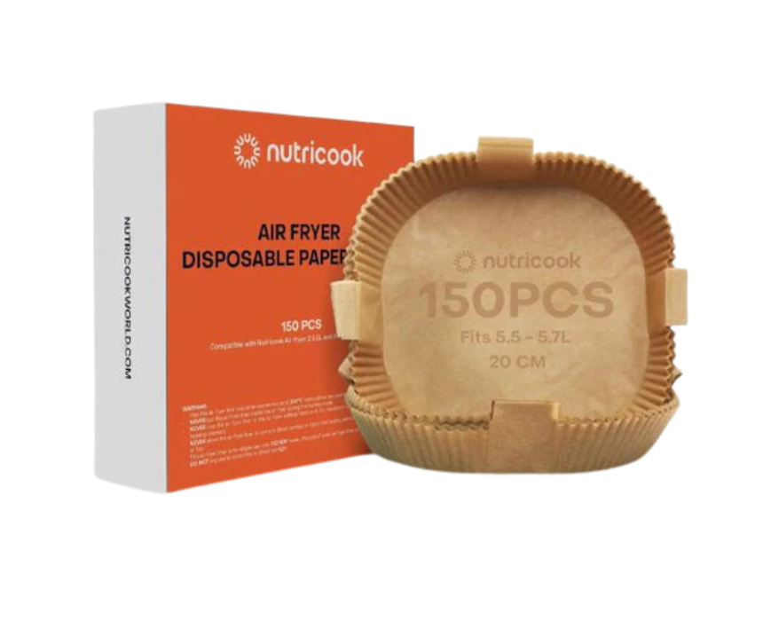 The Nutricook AFL150 Disposable Air Fryer Liners offer mess-free cooking and effortless cleanup with 150 pre-cut, food-grade parchment liners. Designed for safety and convenience, they are non-stick, oil-resistant, and heat-safe up to 220°C, fitting most air fryers, ovens, steamers, and microwaves. Perfect for daily use, these disposable liners simplify cooking and cleaning while protecting your appliances and food.