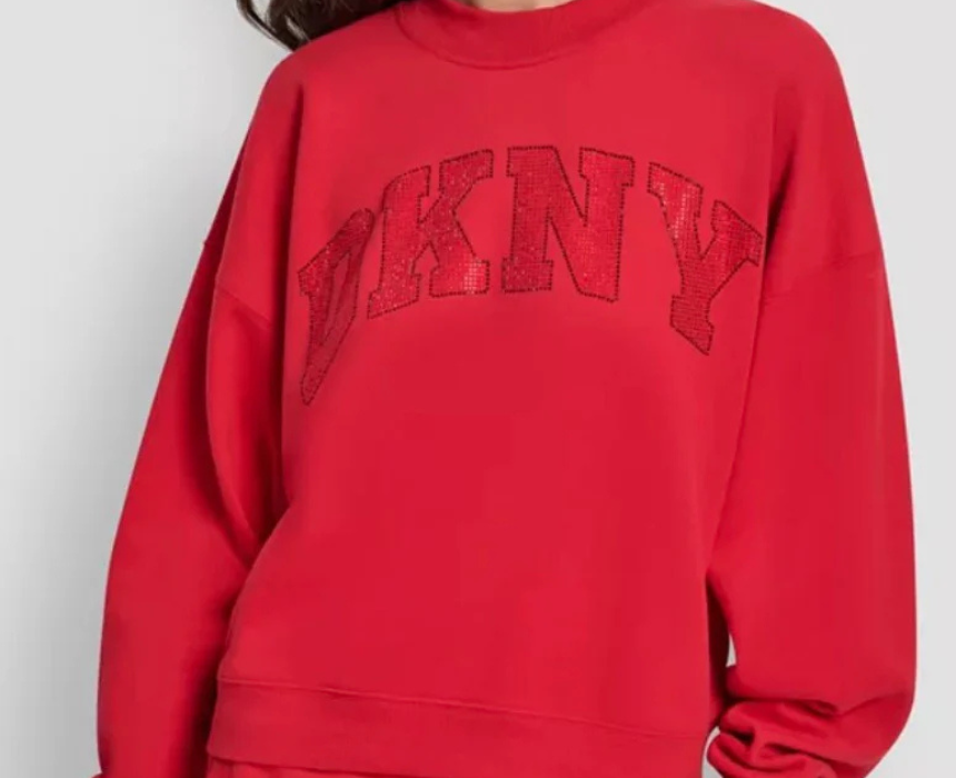 This DKNY Rhinestone Logo Hoodie features a stylish design with a sparkling logo detail and a comfortable, relaxed fit. Perfect for casual wear or layering, it pairs effortlessly with jeans, joggers, or leggings for a chic and cozy everyday look.