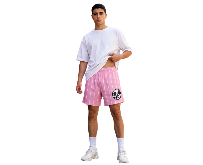 These Doflamingo mesh shorts are made from lightweight, breathable fabric with an elastic waistband for a comfortable and flexible fit. Featuring bold anime inspired graphics, they are perfect for workouts, lounging, or casual everyday wear. Pair them with a simple tee and sneakers for an easy sporty street style.