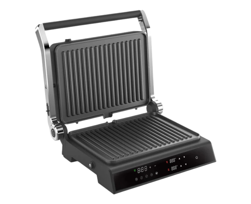 The Dorsch Sandwich Toaster ST-50 DH-07601 is a high-performance 2000–2200W appliance featuring a touch screen interface, five pre-set programs, adjustable heat settings for each side, and a built-in timer for precise toasting. Its 180-degree opening and non-stick surfaces allow versatile cooking and easy cleaning, while fast heating ensures evenly cooked sandwiches every time. Ideal for busy kitchens, it combines modern design with efficient, customizable sandwich preparation.